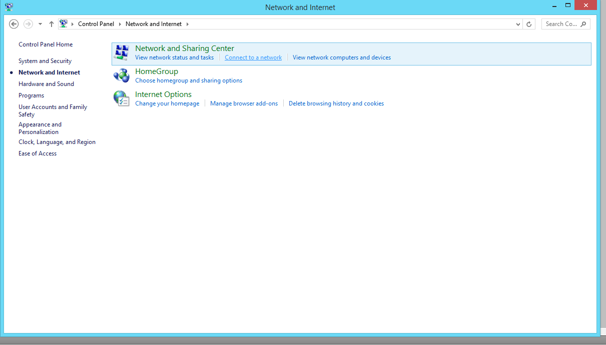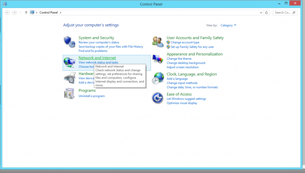 Step 3: In Network and Internet select “Network and Sharing Center“