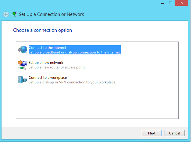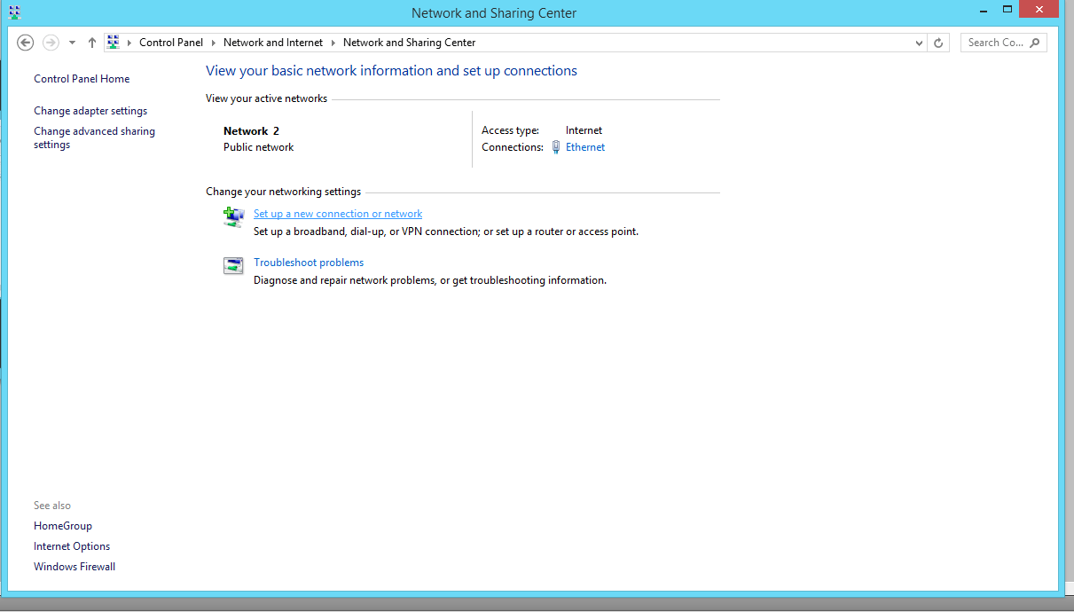 Step 4: in Network and Sharing Center click on”Set up a New Connection or Network“
